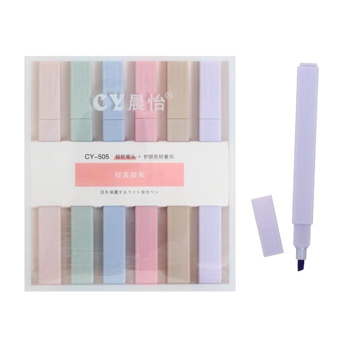 Набор маркеров-текстовыделителей, 6 пастельных цветов, корпус квадратный