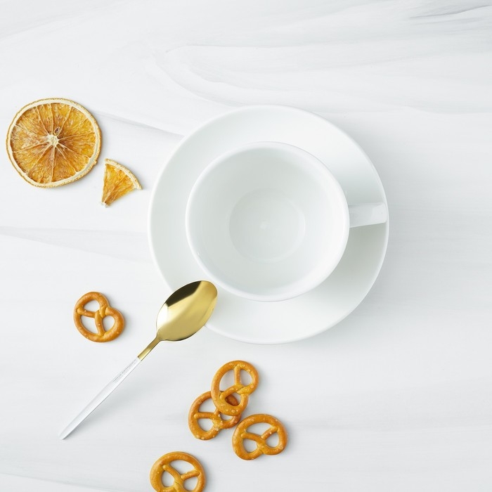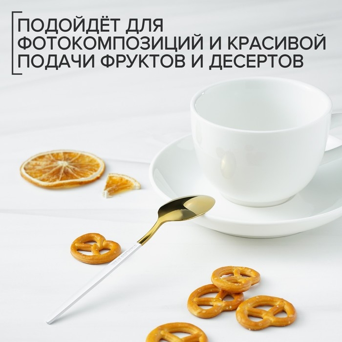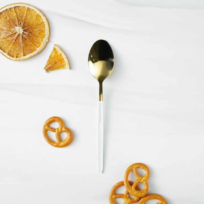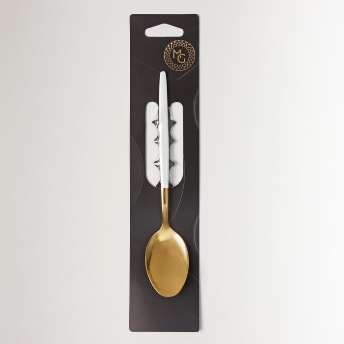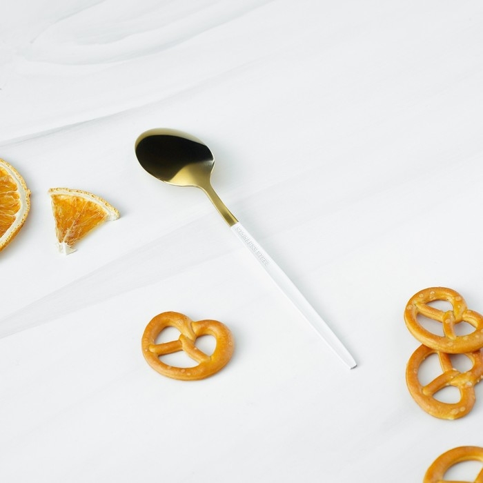 Ложка чайная из нержавеющей стали Magistro «Блинк», 15,5×2,8 см, белая ручка, на подвесе, цвет золотой