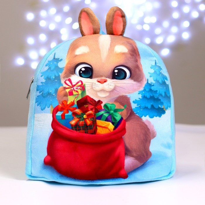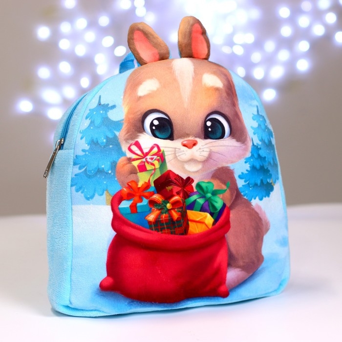 Рюкзак детский плюшевый «Заяц с подарками», 24 х 24 см