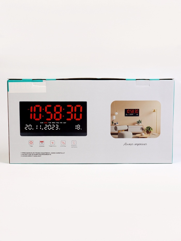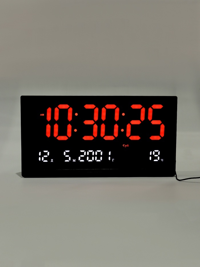 Часы электронные настенные, календарь термометр, 47.5 х 25.3 см, красные цифры 10.8 х 5.3 см 10766