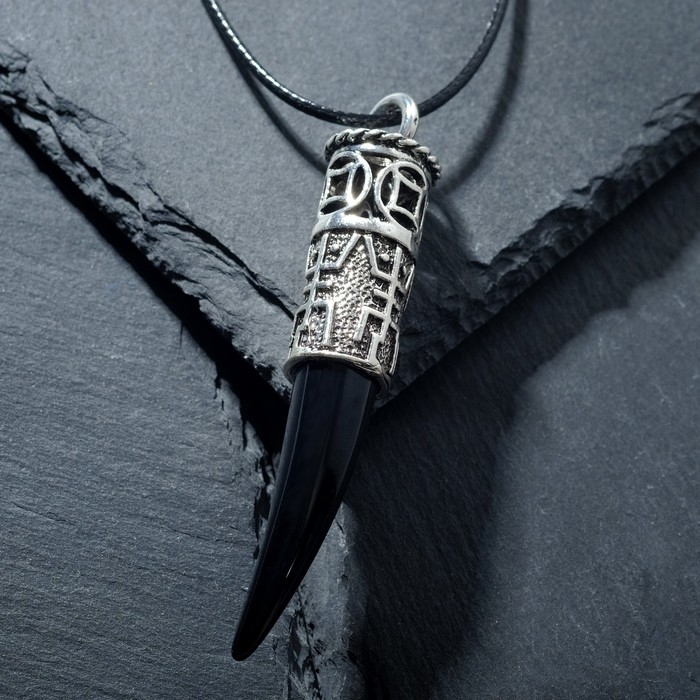 Кулон унисекс «Клык» с рунами, цвет чёрный в чернёном серебре, 44 см