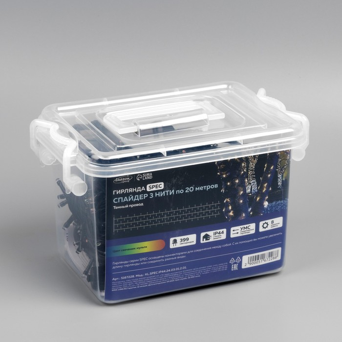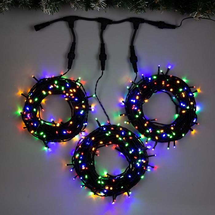 Гирлянда «Клип-лайт» 3 нити по 20 м, IP44, УМС, тёмная нить, 399 LED, свечение мульти, 8 режимов, 24 В