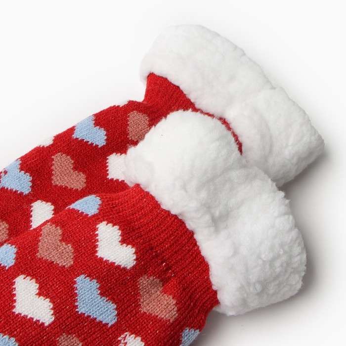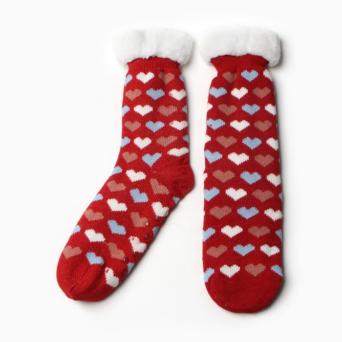 Носки женские с мехом "Сердечки", цвет красный, размер 36-40