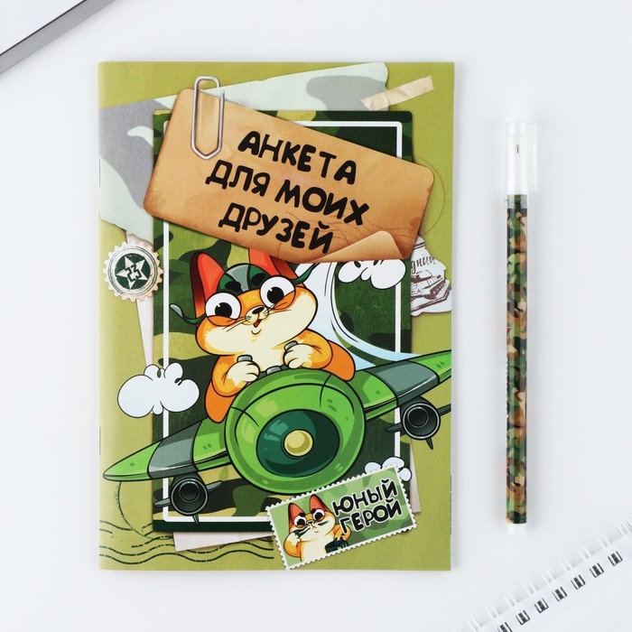 Анкета для мальчиков и ручка «23 февраля: Кот»