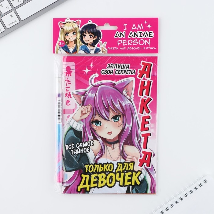 Подарочный набор анкета для девочек и ручка «Аниме»
