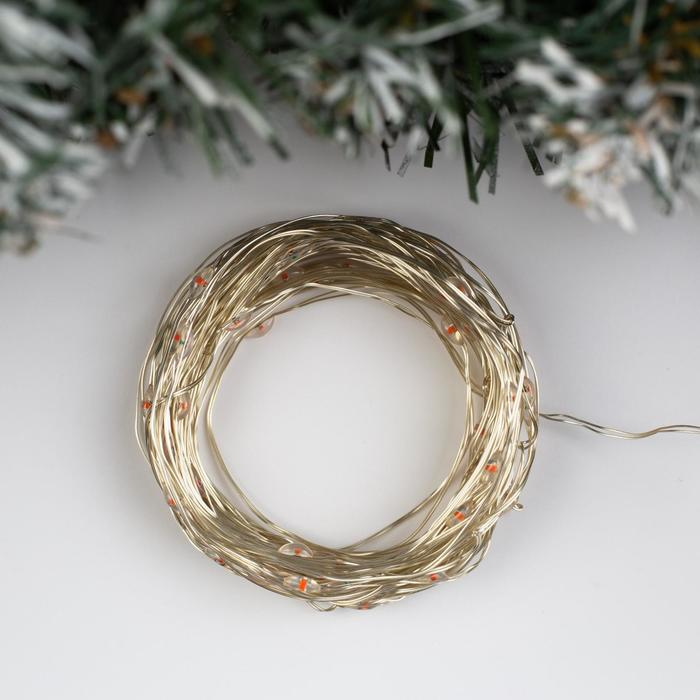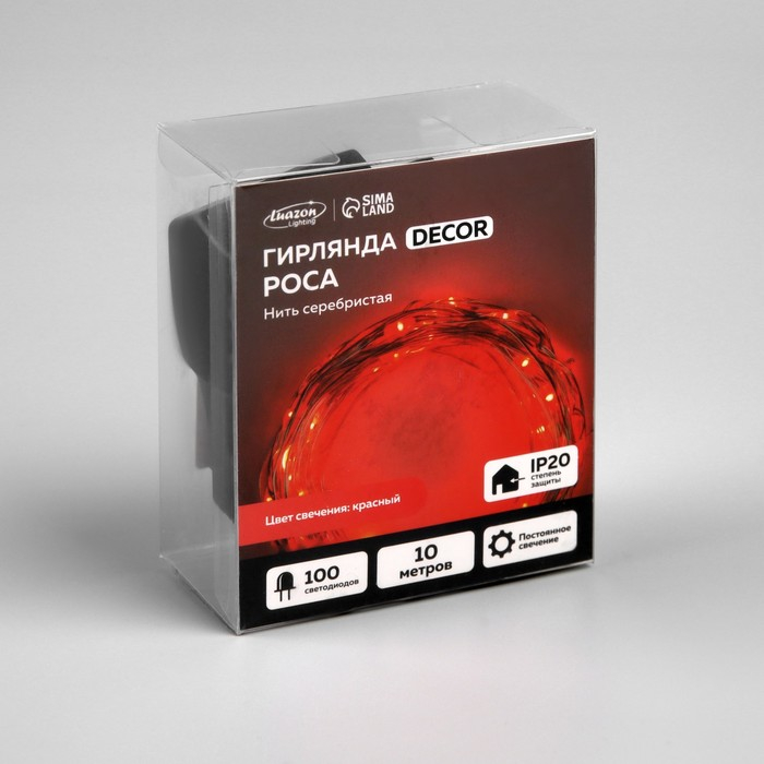 Гирлянда «Нить» 10 м роса, IP20, серебристая нить, 100 LED, свечение красное, 12 В