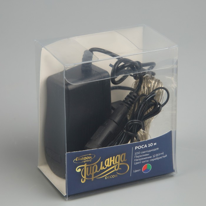 Гирлянда «Нить» 10 м роса, IP20, серебристая нить, 100 LED, свечение мульти (RGB), переливы, 12 В