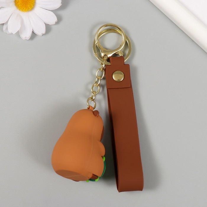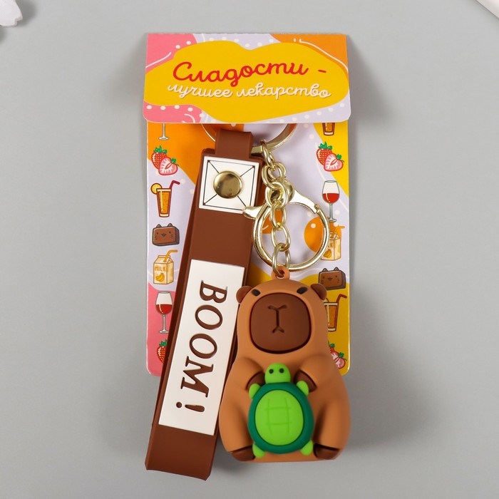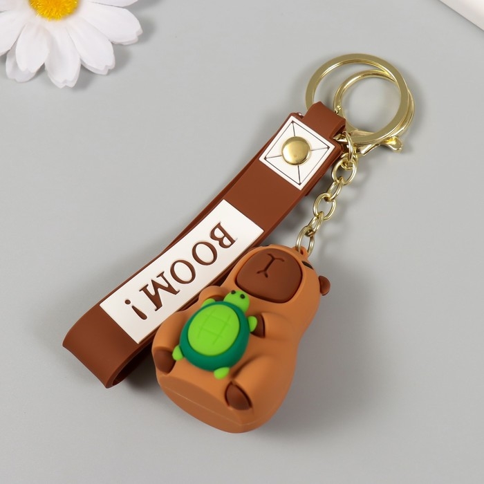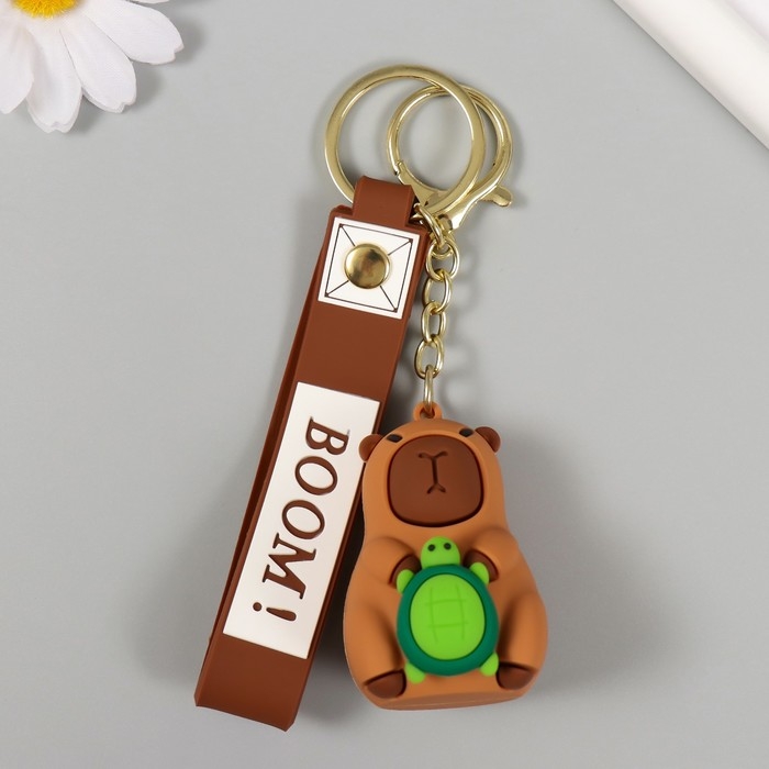 Брелок резина с карабином, ремешком "Капибара с черепашкой" 3,7х3,7х5,5 см