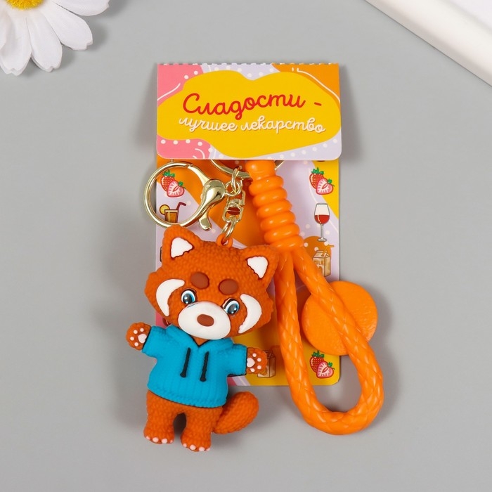 Брелок резина с карабином, ремешком "Енотик в толстовке" 3,3х4,8х7 см