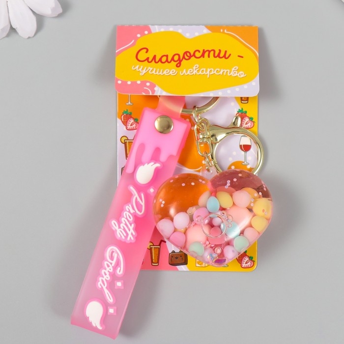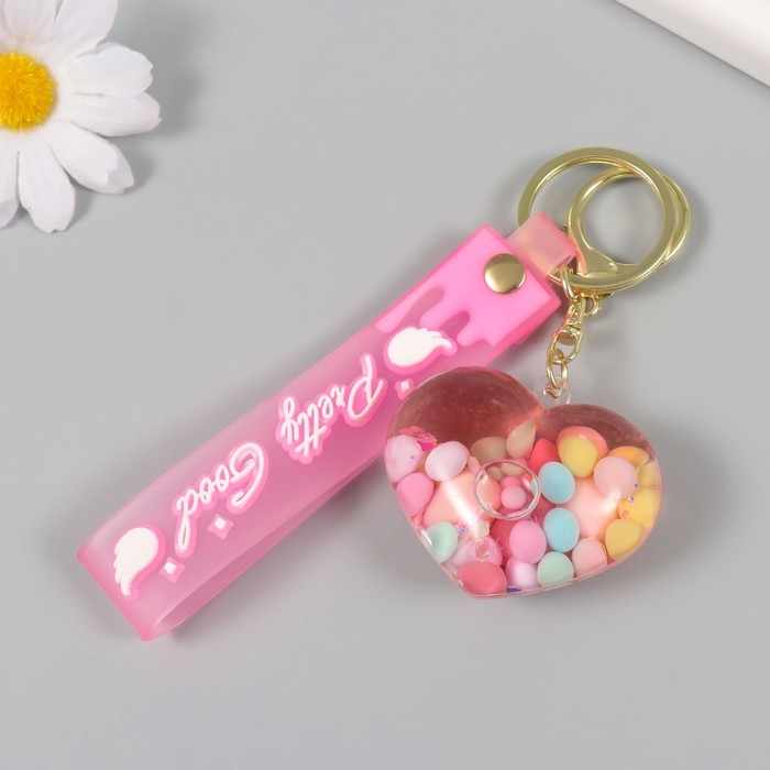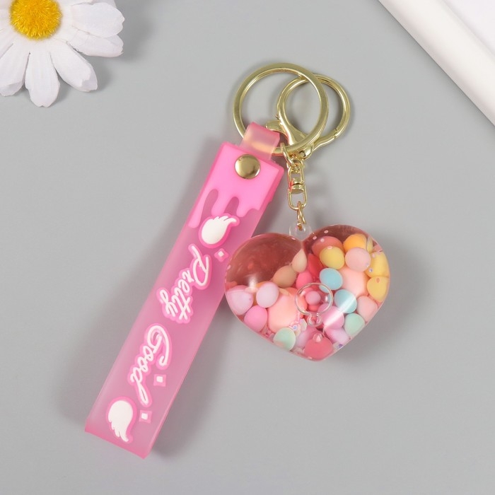 Брелок пластик с карабином, ремешком "Сердечко с шариками" водный с декором 4,5х5х2 см