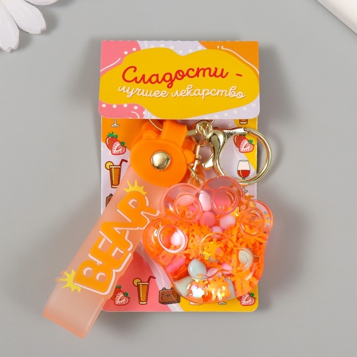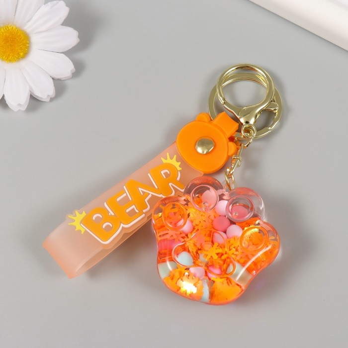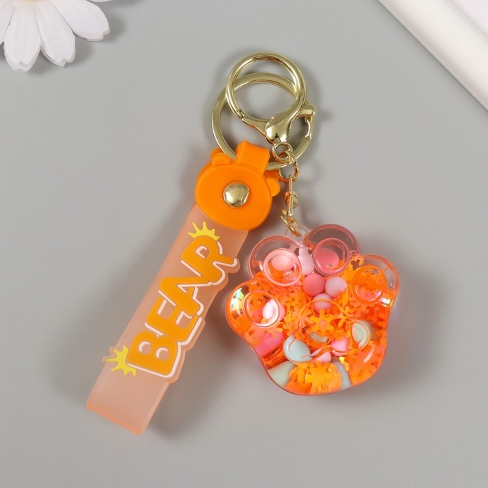 Брелок пластик с карабином, ремешком "Лапка с шариками" водный с блёстками 4,5х5х2 см