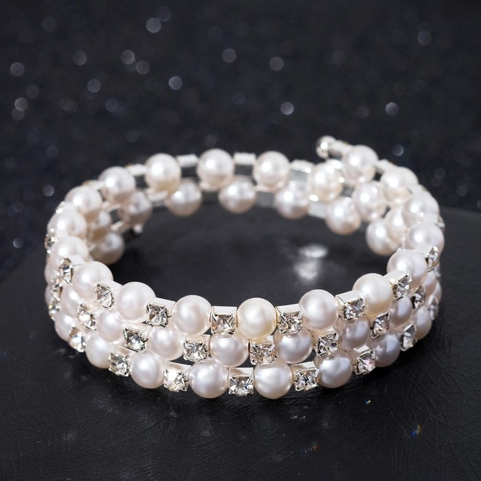 Браслет-пружинка «Жемчужинка морская» 3 ряда, цвет белый в серебре, L=7 см