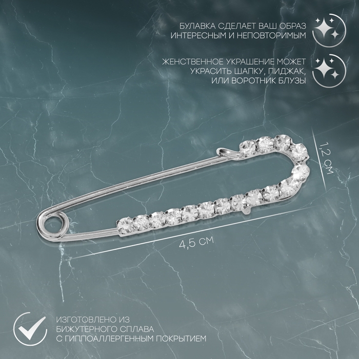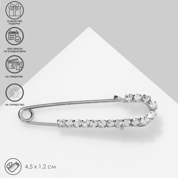 Булавка «Классика» россыпь, 4,5 см, цвет белый в серебре