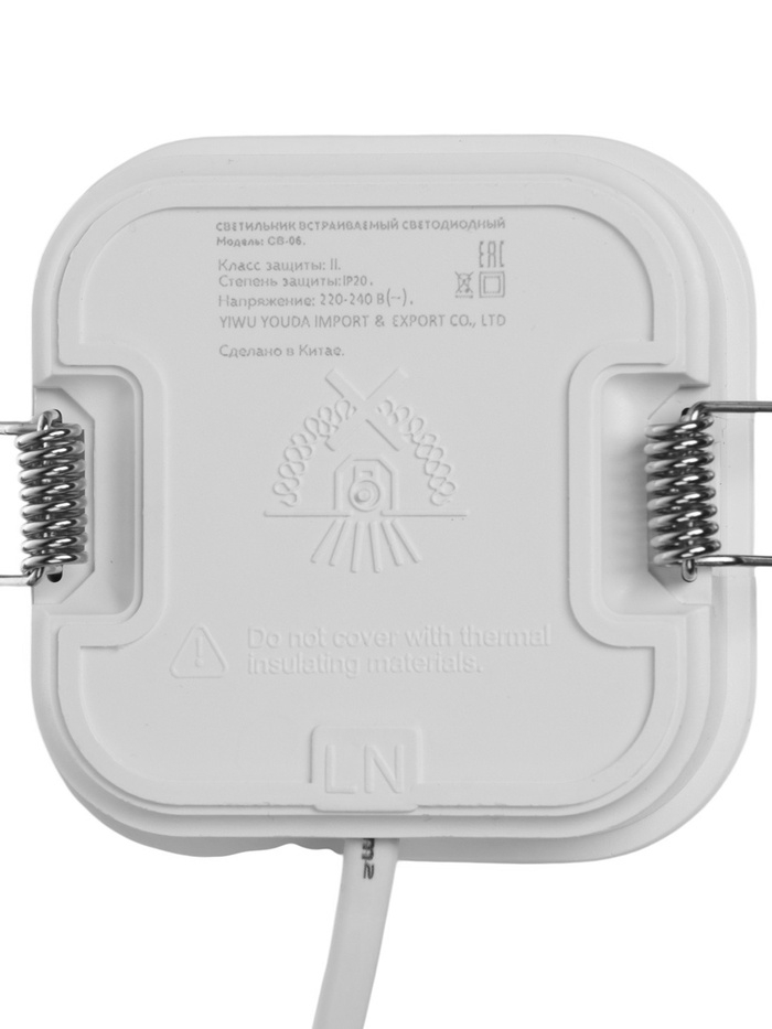 Светильник встраиваемый светодиодный "Даунлайт" 5Вт, 6500K, 475 Лм, 220В, 90x25 мм, квадрат 105329