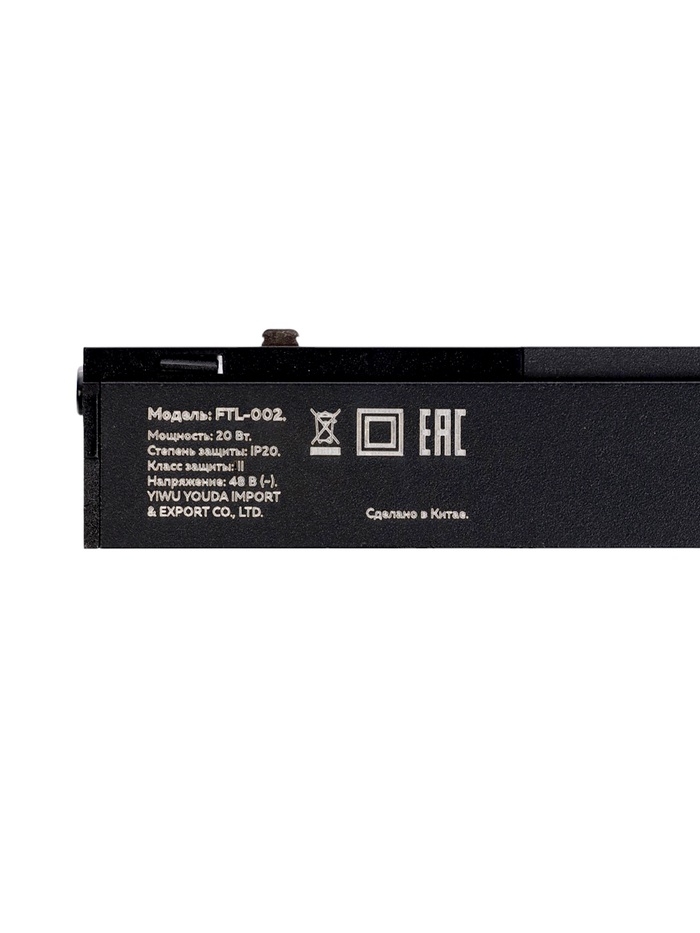 Трековый светильник, серия "Flat" FTL-002, 20Вт, 48В, 3000К, IP20, 600мм, черный