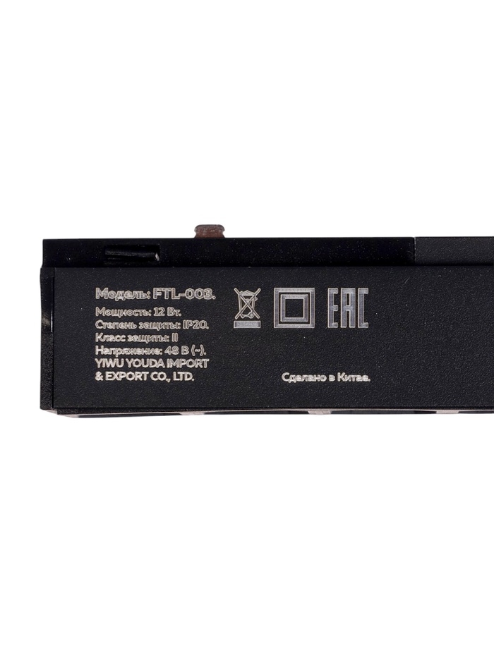 Трековый светильник, серия "Flat" FTL-003, 12Вт, 48В, 3000К, IP20, 260мм, черный