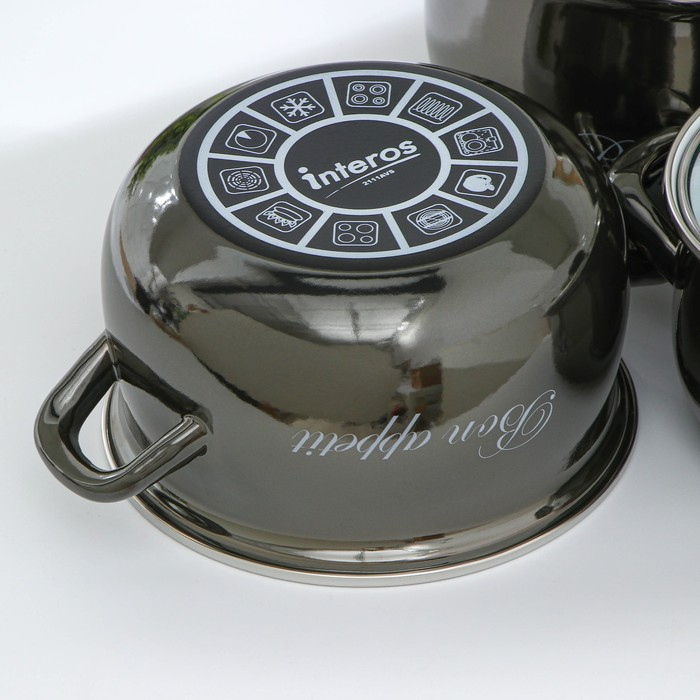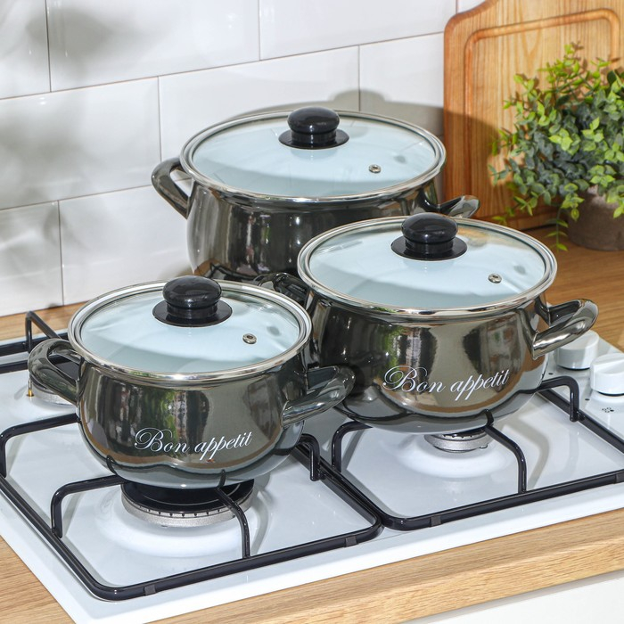 Набор кастрюль «Металлик», 3 предмета: 2,1 л, 3,1 л, 4 л, индукция, цвет чёрный