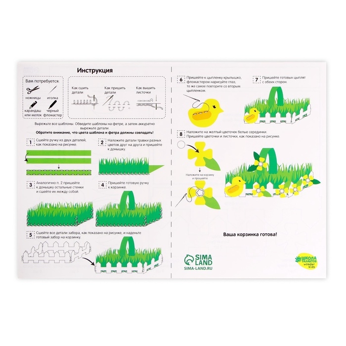 Набор для создания пасхальной корзинки из фетра «Лужайка»