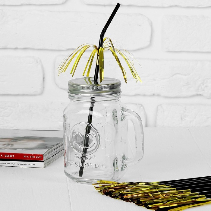 Трубочка для коктейля «Дождик», набор 12 шт., цвет золотой