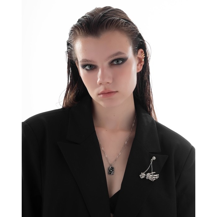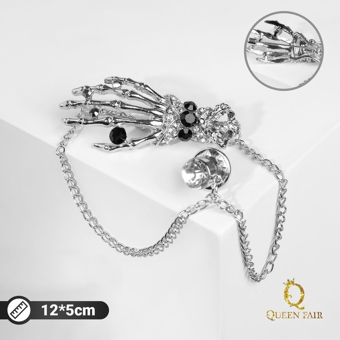 Брошь «Скелет» с цепочкой, цвет чёрно-белый в серебре