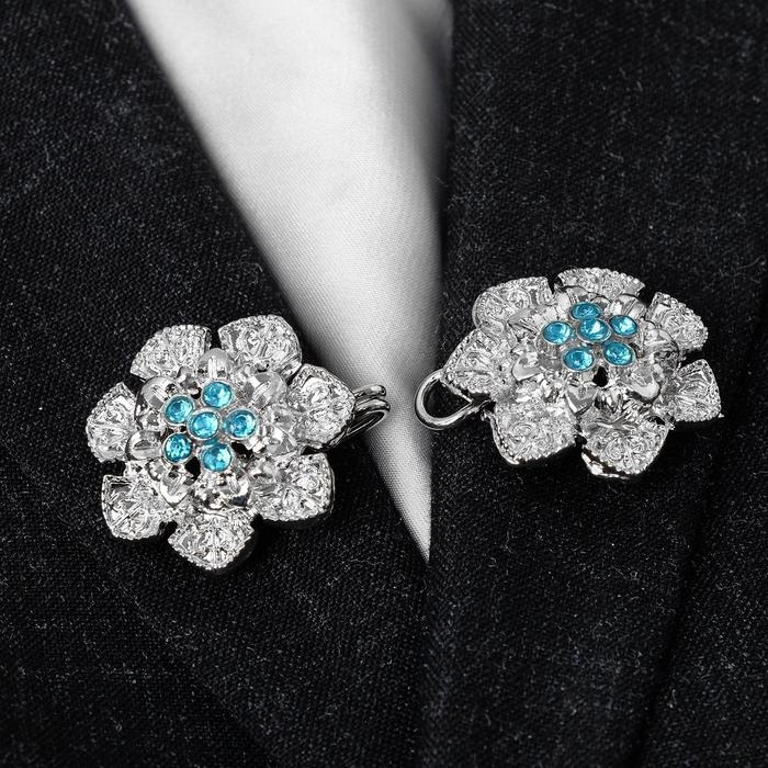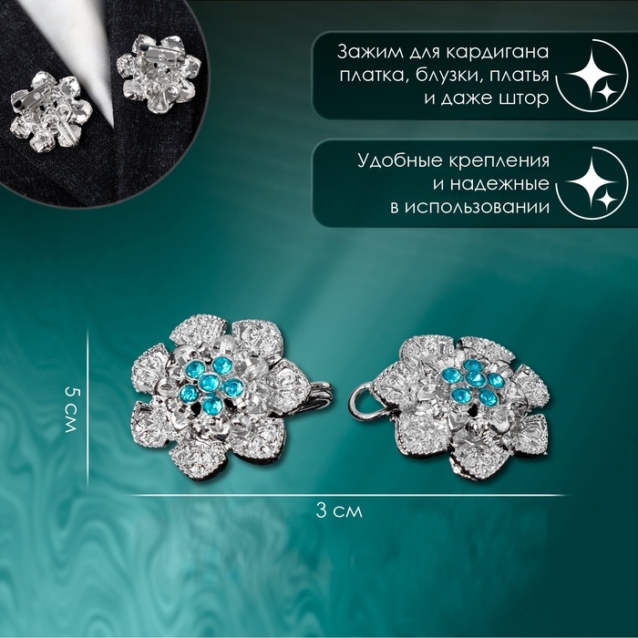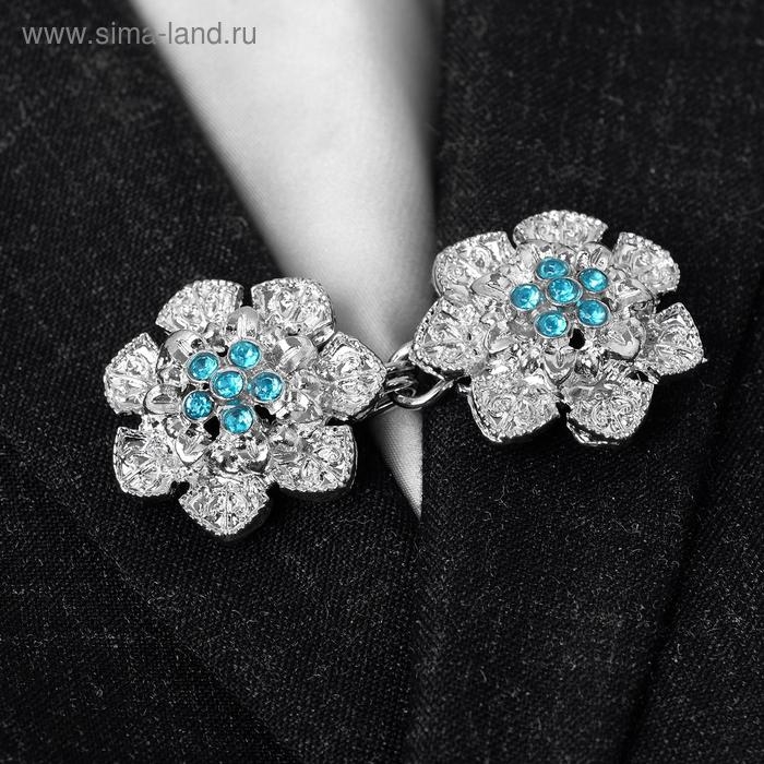 Зажим для кардигана «Цветок», цвет голубой в серебре
