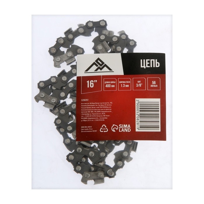 Цепь для бензопилы ЛОМ, 16", 400 мм, ширина паза 1.3 мм, шаг 3/8", 56 звеньев