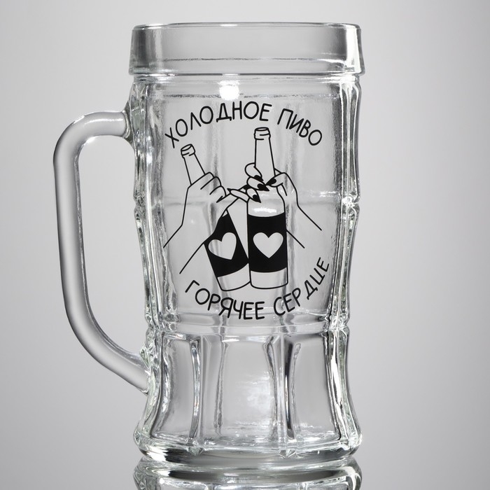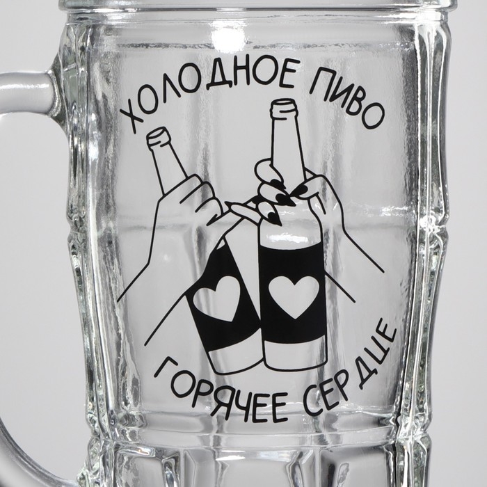 Кружка стеклянная пивная «Холодное пиво, горячее сердце», 500 мл