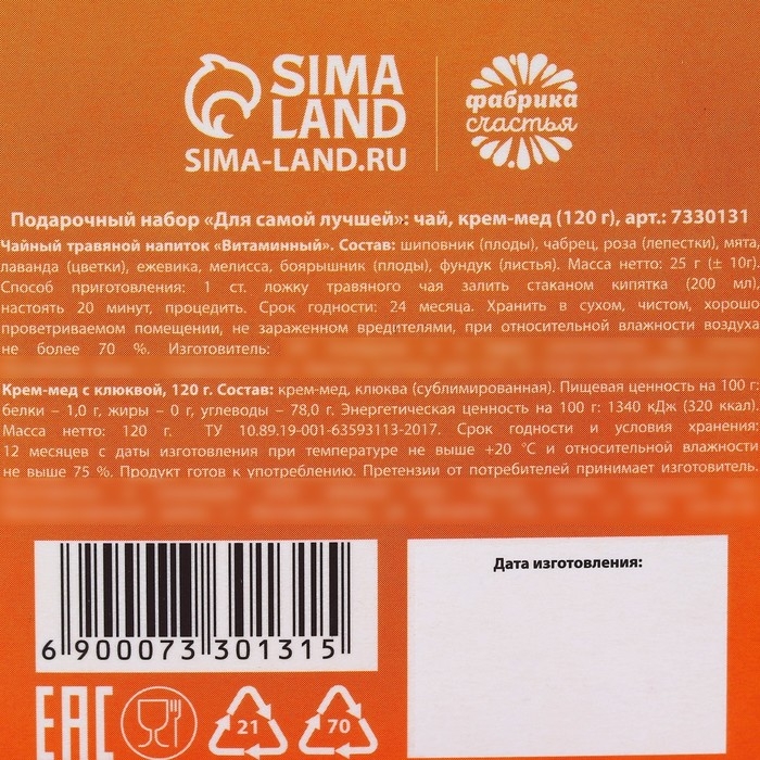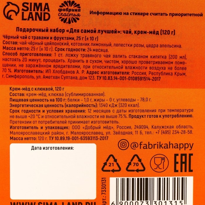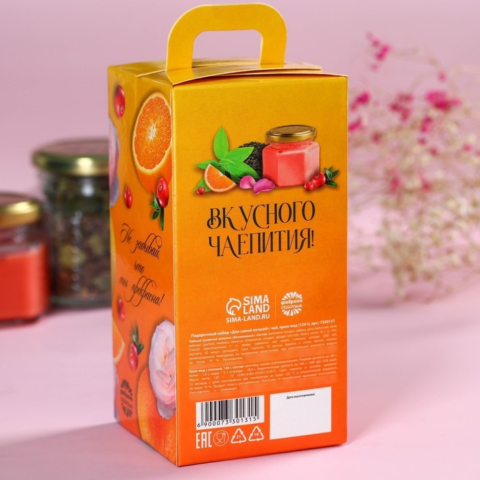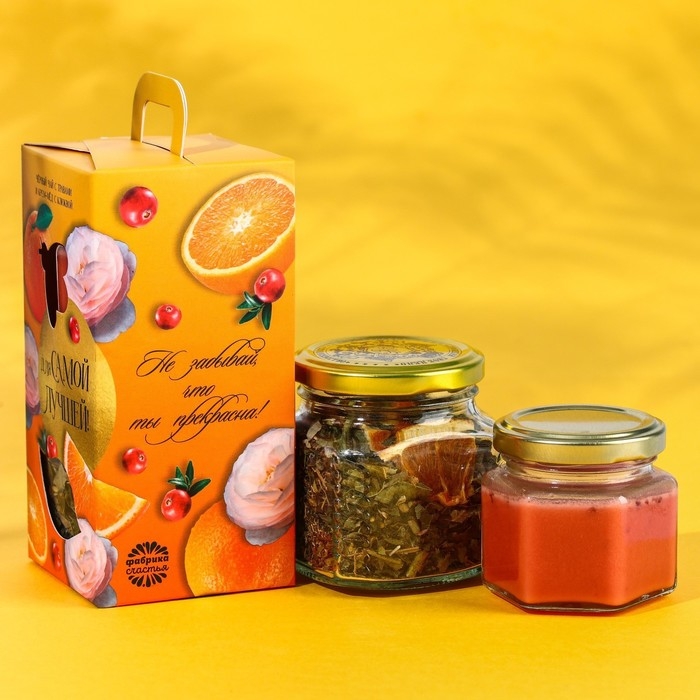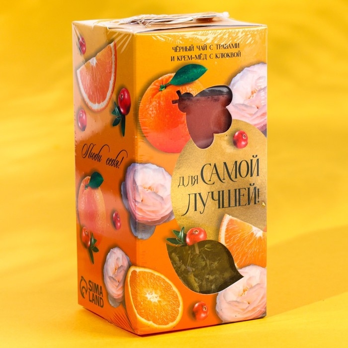 Подарочный набор «Для самой лучшей»: черный чай с травами и фруктами 25 г, крем-мед с клюквой 120 г.