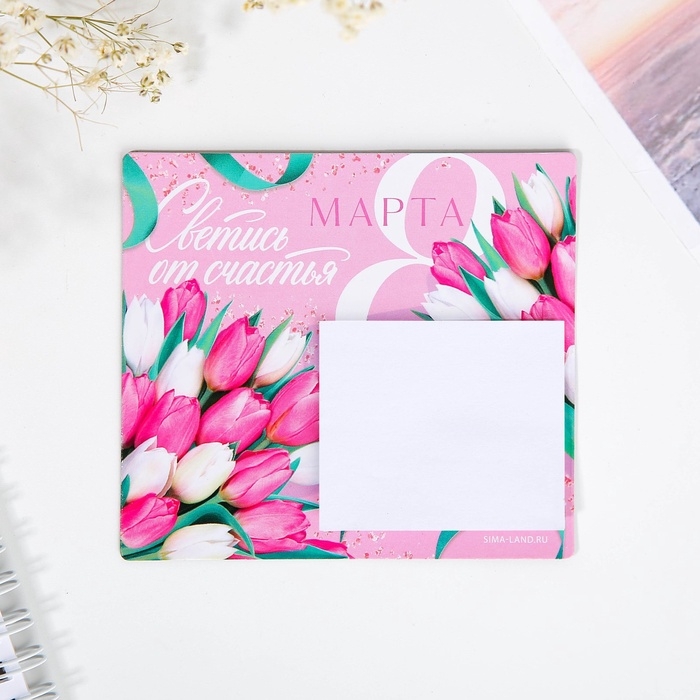 Магнит с блоком для записей «Светись от счастья. 8 марта», 10 х 9 см
