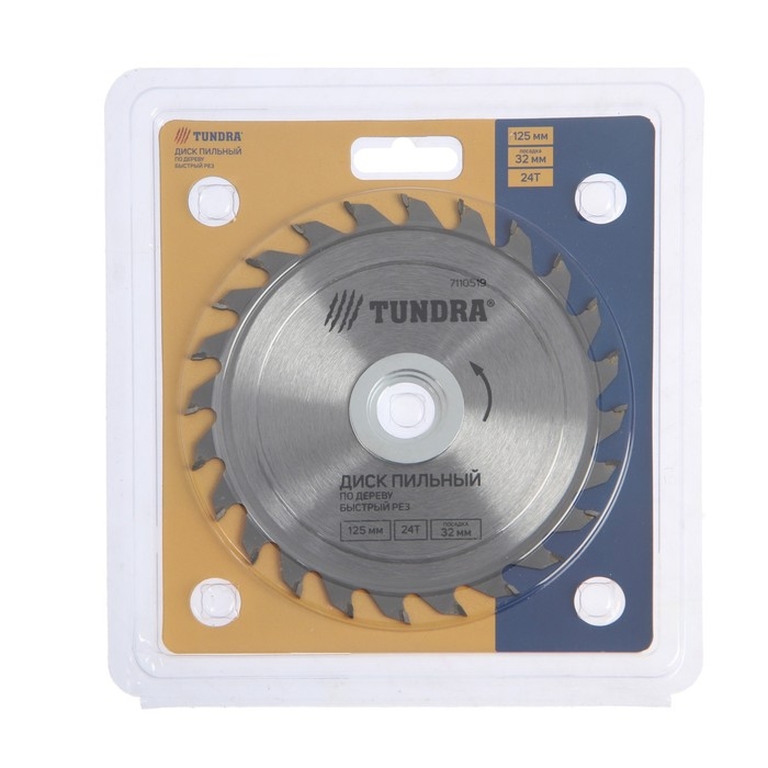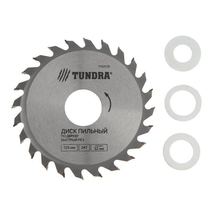 Диск пильный по дереву ТУНДРА, быстрый рез, 125 х 32 мм (кольца на 22,20,16), 24 зуба