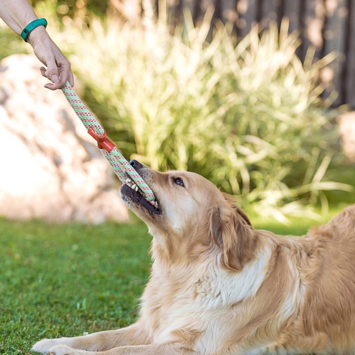 Одна из самых популярных игрушек для собак всех пород. Изготовлена из 100% хлопка. Такая игрушка не только увлекательна, но и полезна для здоровья животного - во время игры хорошо очищает десны и зубы от налета.