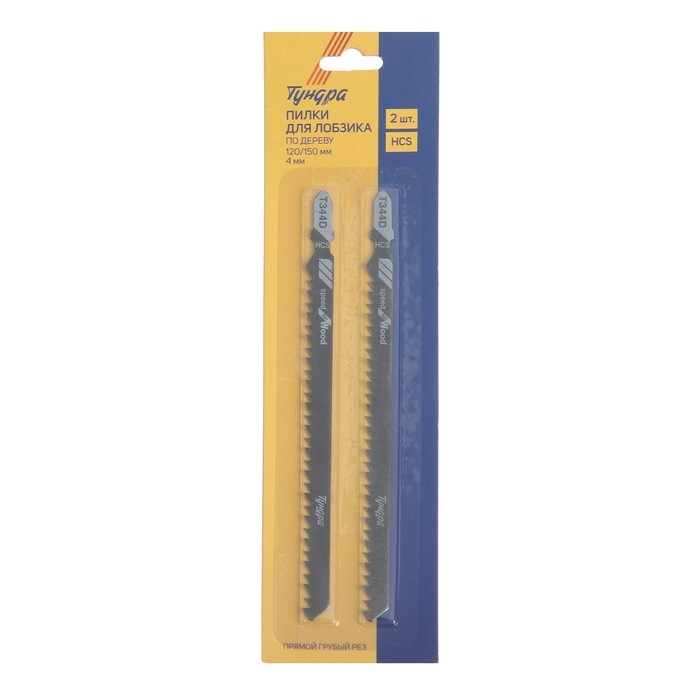 Пилки для лобзиков ТУНДРА, по дереву, прямой грубый рез, HCS, 120/150 х 4 мм, 2 шт.