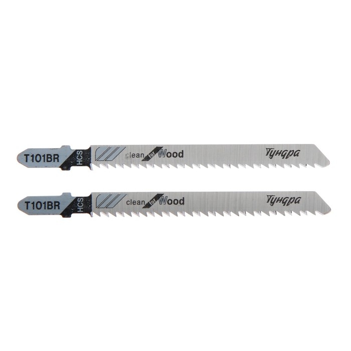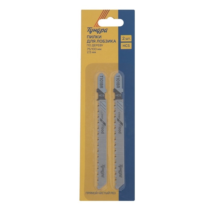 Пилки для лобзиков ТУНДРА, по дереву, чистый прямой рез, HCS, 75/100 х 2.5 мм, 2 шт.