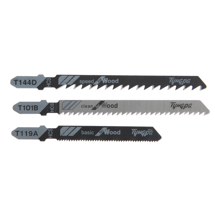 Универсальный набор пилок для лобзиков ТУНДРА, по дереву, 3 шт.