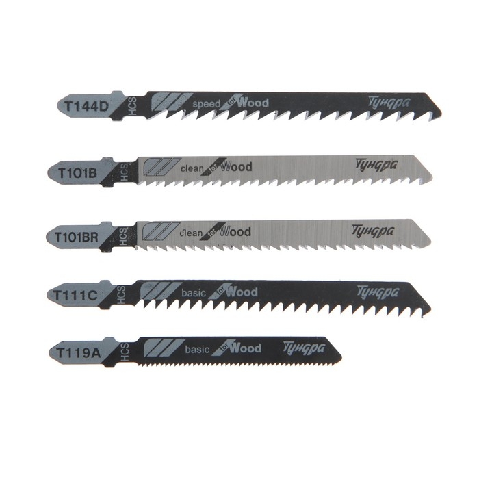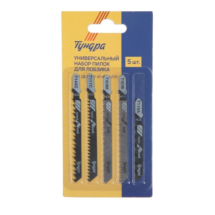 Универсальный набор пилок для лобзиков ТУНДРА, по дереву и металлу, 5 шт.