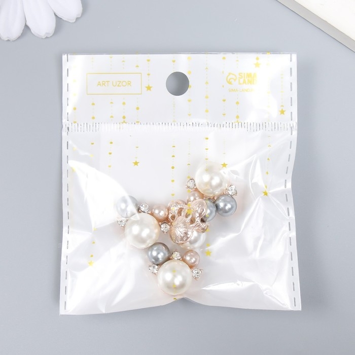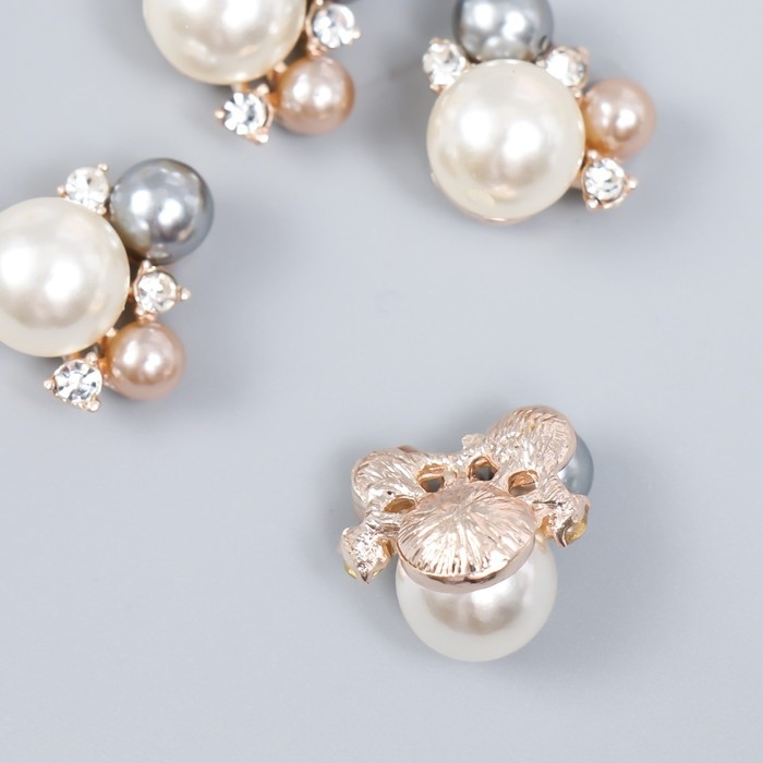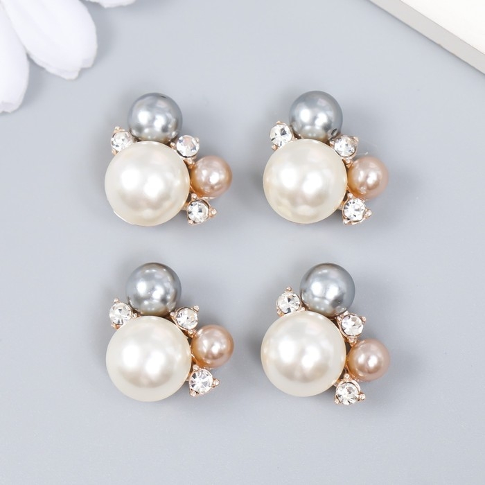 Декор для творчества металл, пластик "Три жемчужинки" стразы набор 4 шт 2х1,7 см