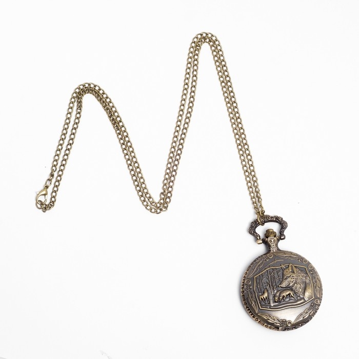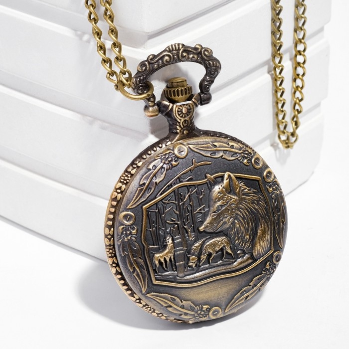Часы карманные "Волк", кварцевые, цепочка l-40 см, d-4.5 см