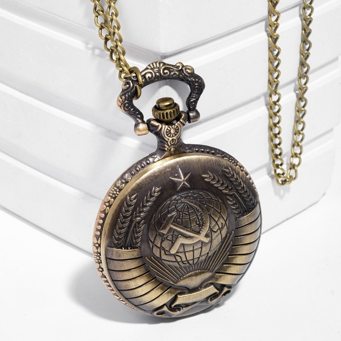 Часы карманные "СССР", кварцевые, цепочка l-40 см, d-4.5 см