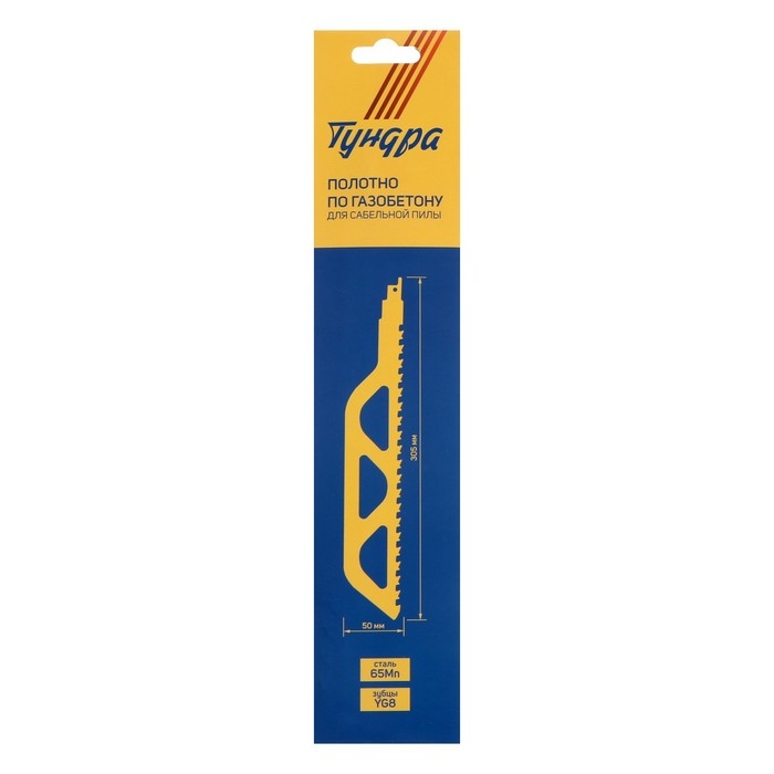 Полотно по газобетону для сабельной пилы ТУНДРА, сталь 65Mn, зубцы YG8, 305x50x1.5 мм