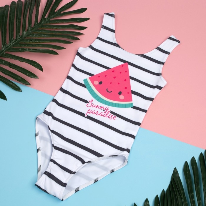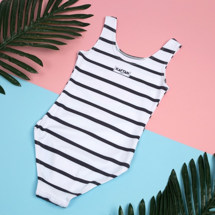 Купальник детский в полоску KAFTAN, рост 122-128 см, белый/черный