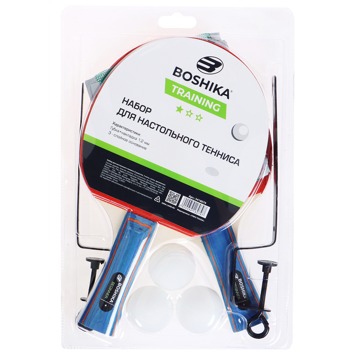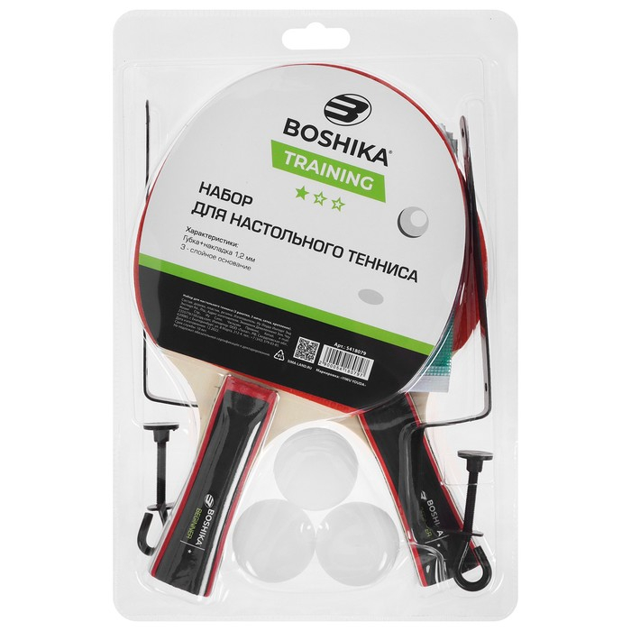 Набор для настольного тенниса BOSHIKA Training: 2 ракетки, 3 мяча, 1 звезда, сетка, крепление, цвет МИКС
