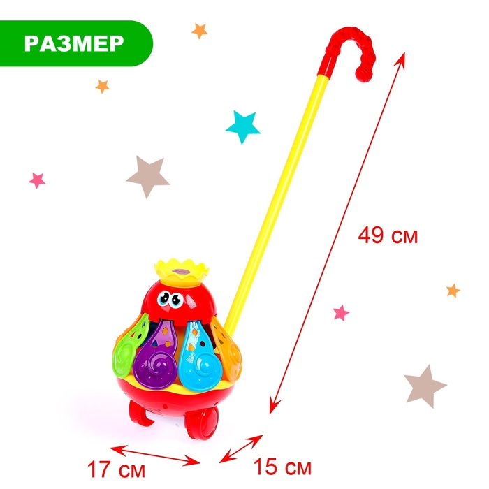 Яркая каталка подойдёт для игры на свежем воздухе или дома.