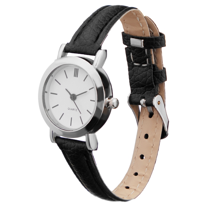 Часы наручные женские кварцевые "Ливато", d-3.7 см, черные