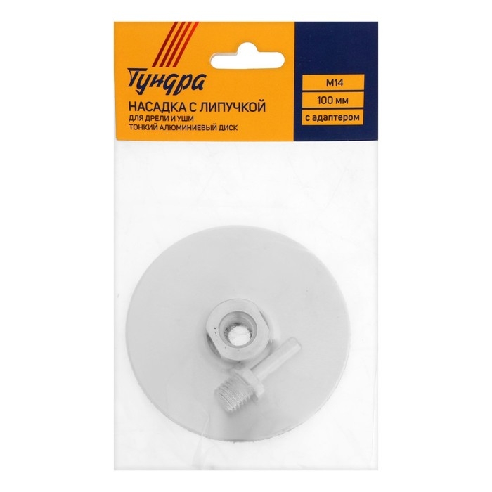 Насадка с липучкой для дрели и УШМ ТУНДРА, тонкий алюминиевый диск, М14, с адаптером, 100 мм