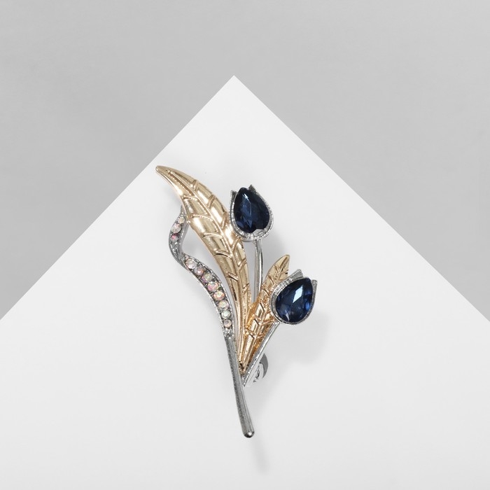 Брошь «Императрица» иней, цвет синий в золоте