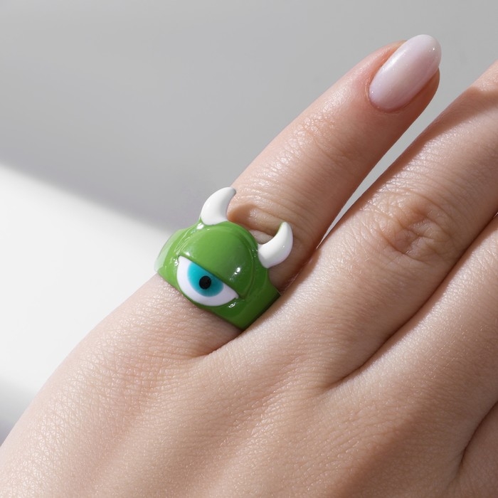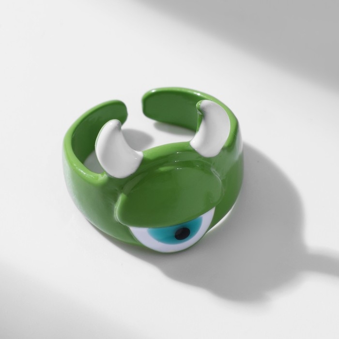 Кольцо «Монстрик» с рожками и глазом, цвет зелёный, безразмерное