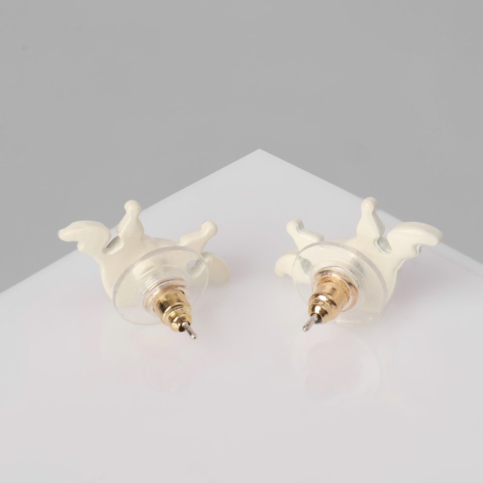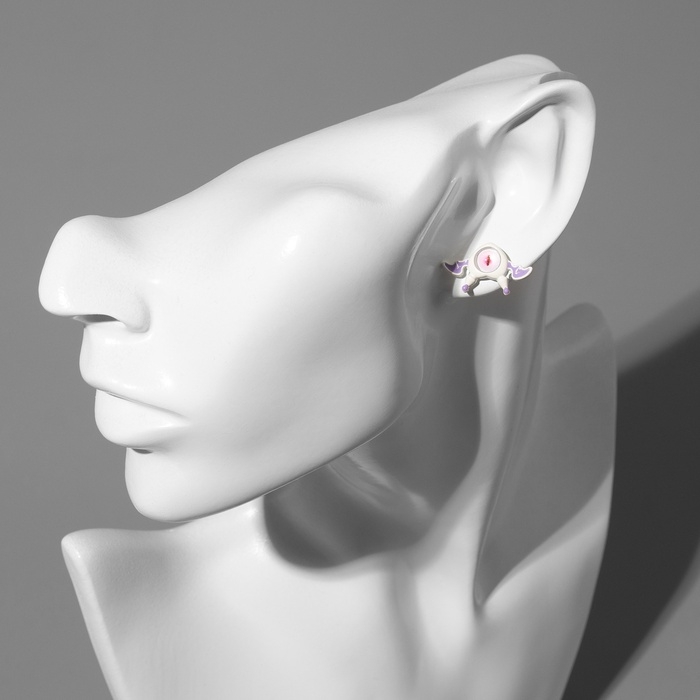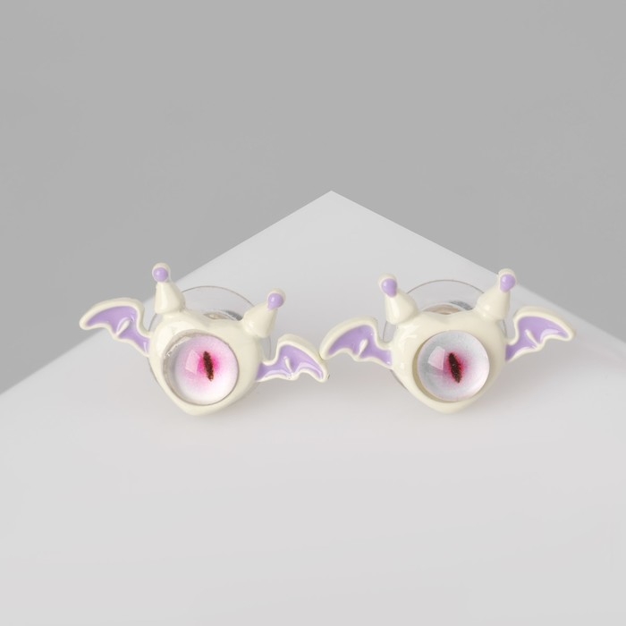 Серьги с эмалью «Монстрики» с крылышками, цвет бело-розовый - яркий элемент на Хэллоуин, который порадует любого.