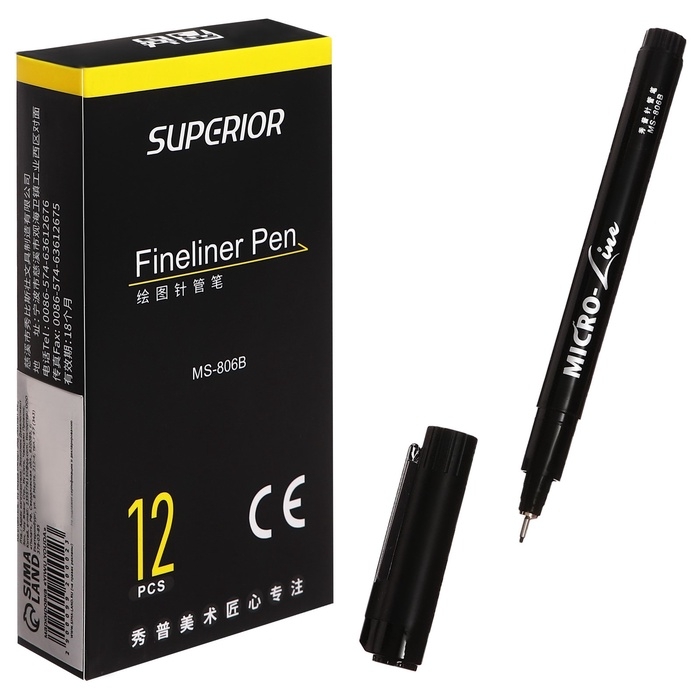 Маркер профессиональный линер черный, тонкая линия, 0.5мм
