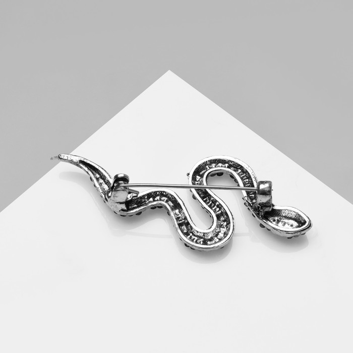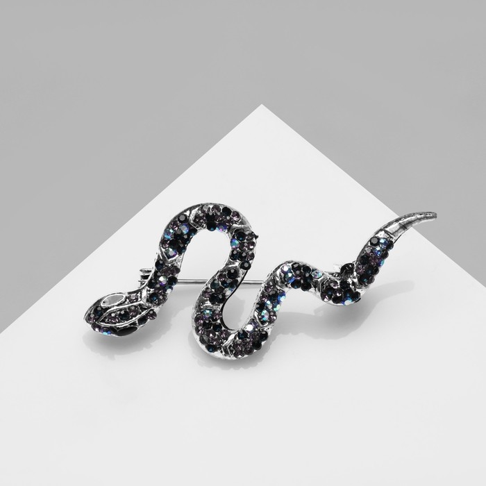 Брошь «Змея» в движении, цветная в чернёном серебре