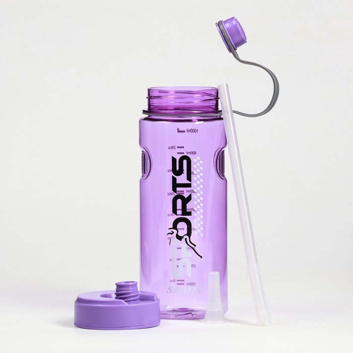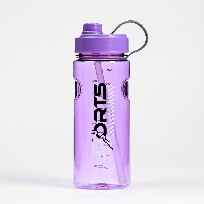 Бутылка для воды спортивная, с трубочкой, фиолетовая 24.5 х 8.5 см